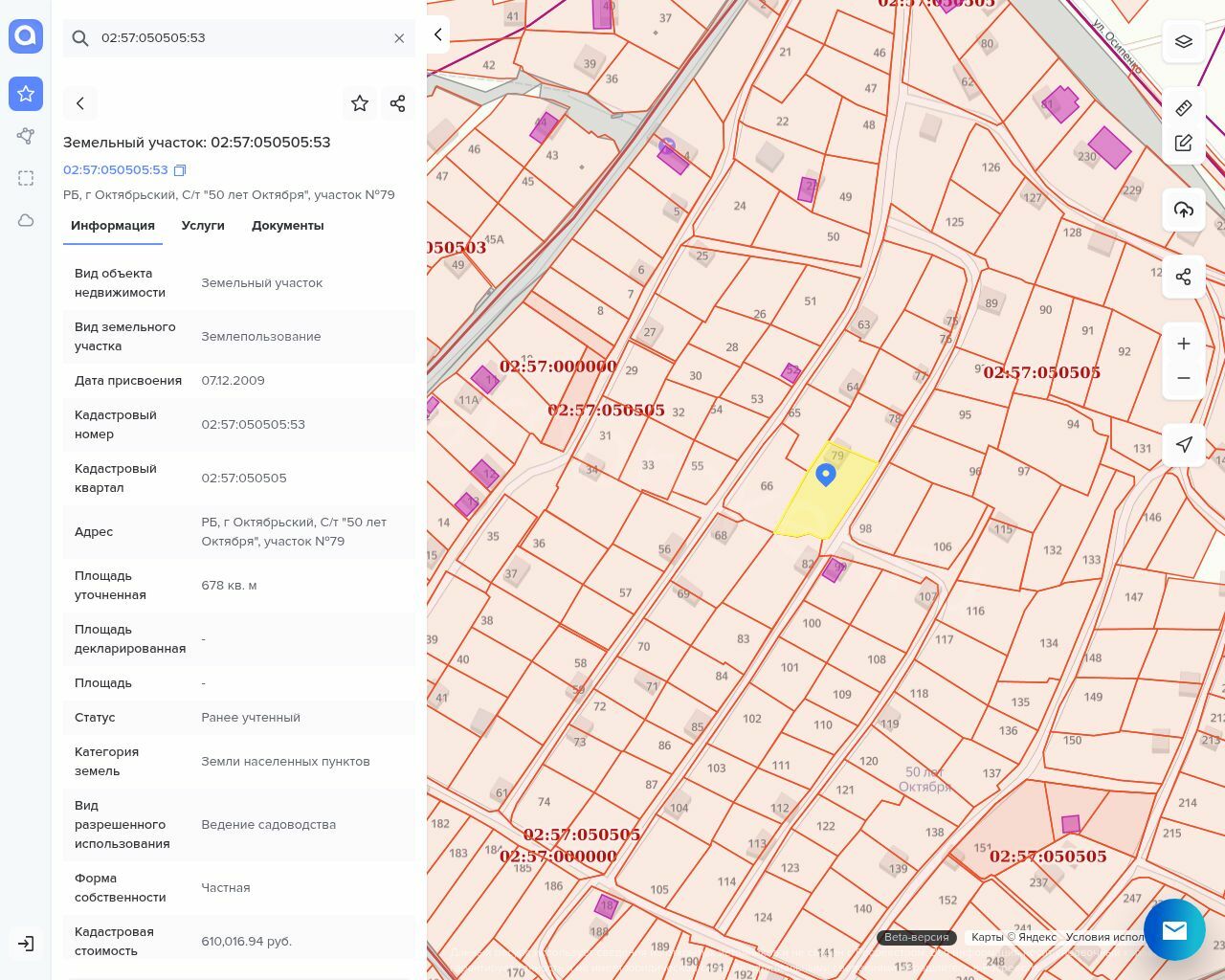 Лот №1 - Земельный участок, виды разрешенного использования объекта недвижимости: ведение садоводства, площадь: 678+/-9 кв.м., кадастровый номер: 02:57:050505:53,