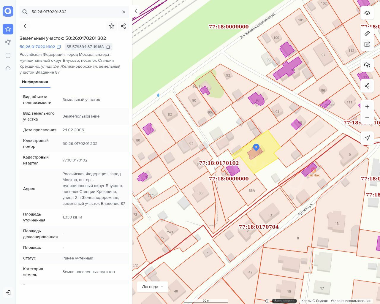 Адрес: г. Москва, поселение Марушкинское, ст. Крекшино, ул. 2-я Железнодорожная, уч. 87