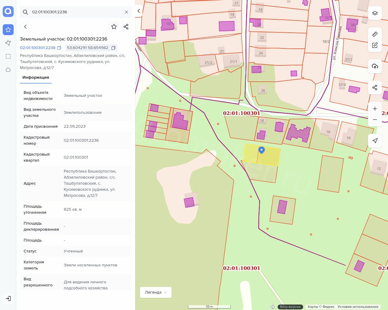 Земельный участок, площадью 825 кв.м. кадастровый номер 02:01:100301:2236 Имущество принадлежит на праве собственности Продавцу.