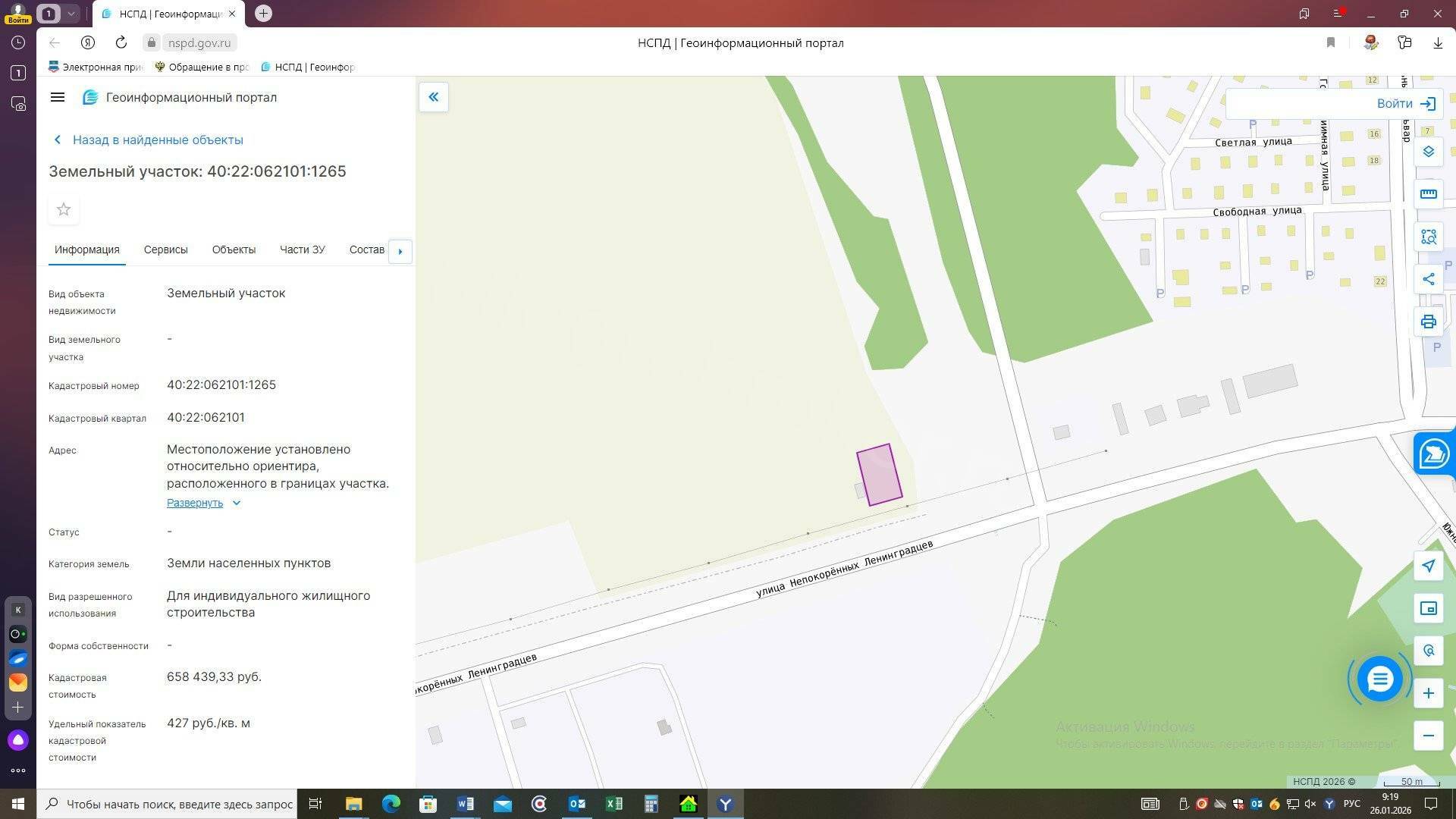 Вид разрешённого использования земельного участка: Для индивидуального жилищного строительства Кадастровый номер земельного участка: 40:22:062101:1265 Площадь земельного участка: 1542 м^2
